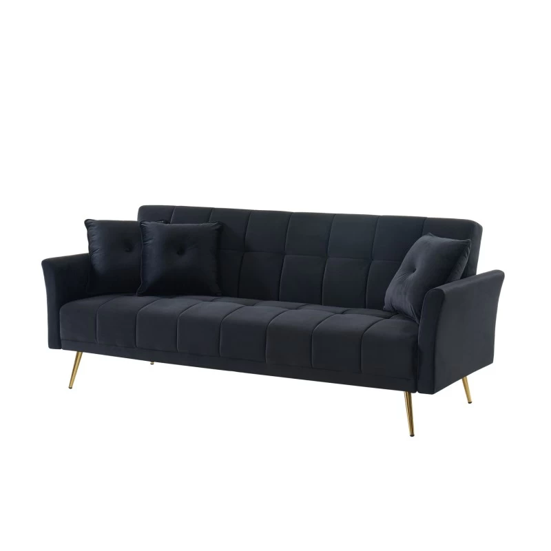 Le canapé chic et tendance AROMA habillera avec élégance votre salon. Vous souhaitez optimiser l’espace de votre intérieur ? Alors craquez pour le canapé droit AROMA qui vous permettra d’accueillir 3 convives. Ses détails capitonnés, ses pieds dorés et son revêtement en velours en feront la pièce phare de votre maison !