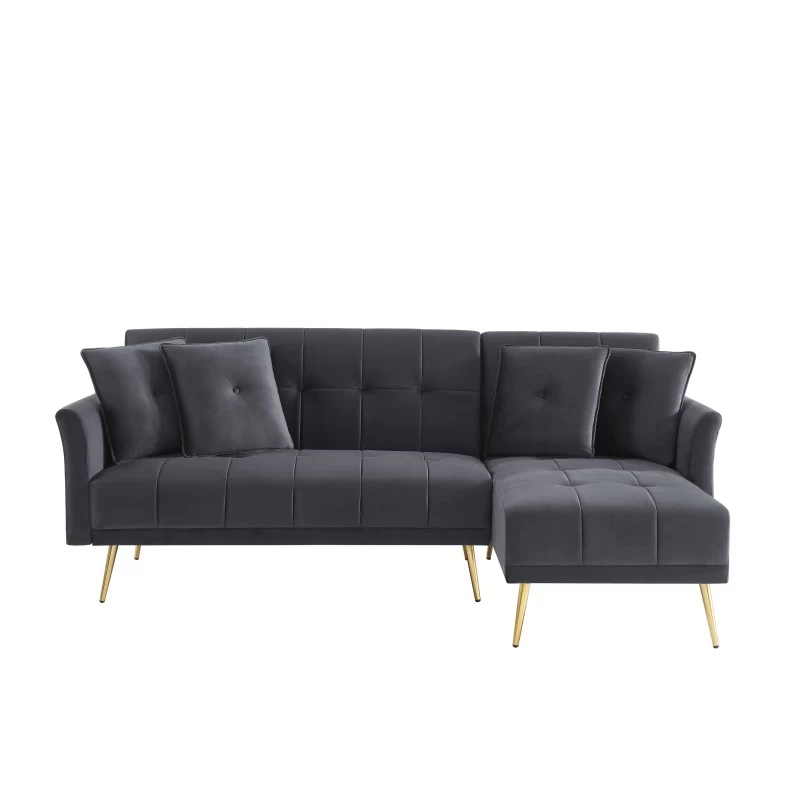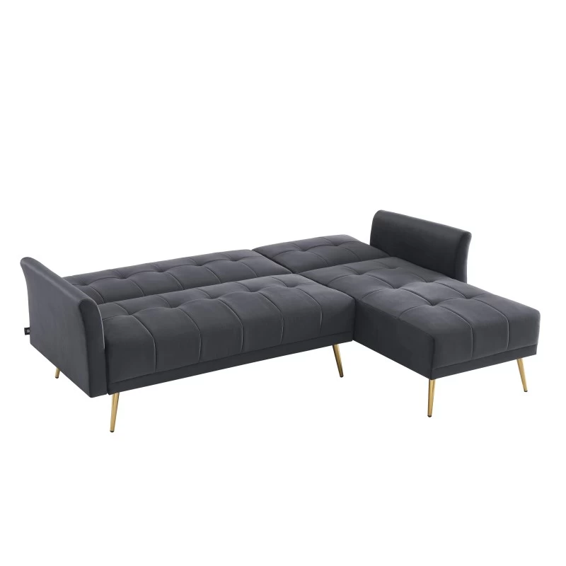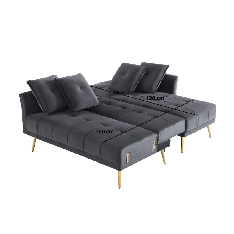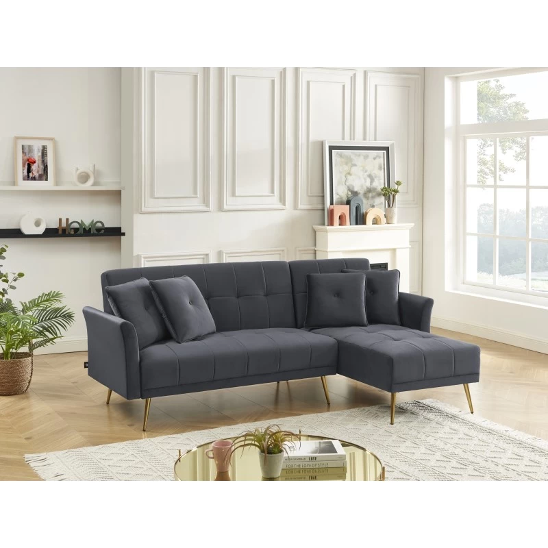 Canapé D’angle AROMA Convertible Velours Anthracite 4 Places
