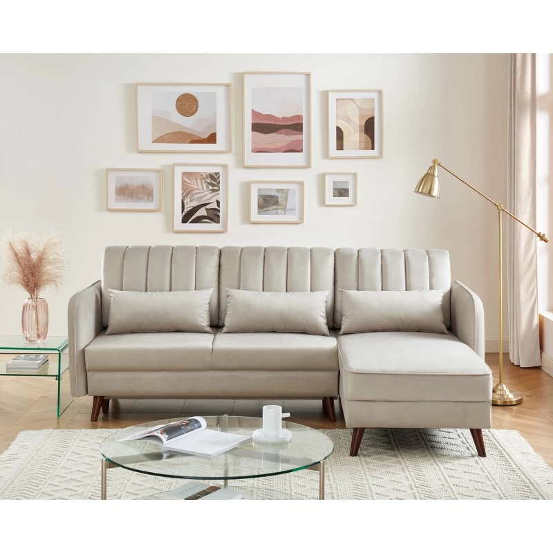 Canapé D’angle IDAHO En Tissu Sable Convertible