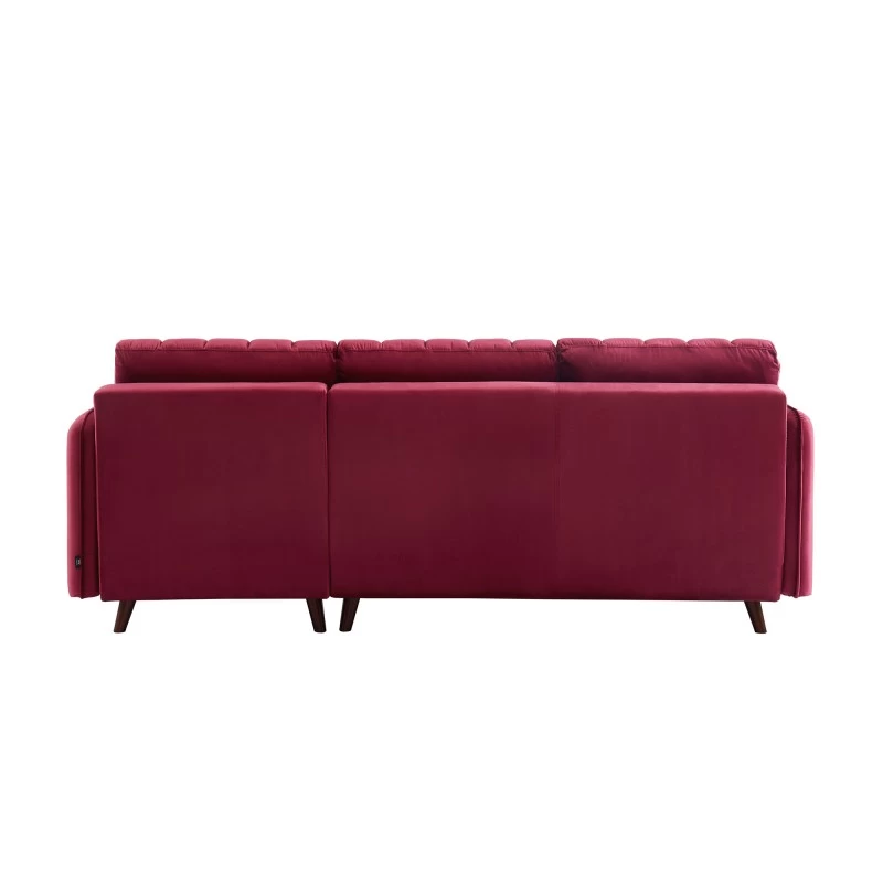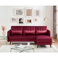 Canapé D’angle IDAHO En Velours Rouge Bordeaux Fixe