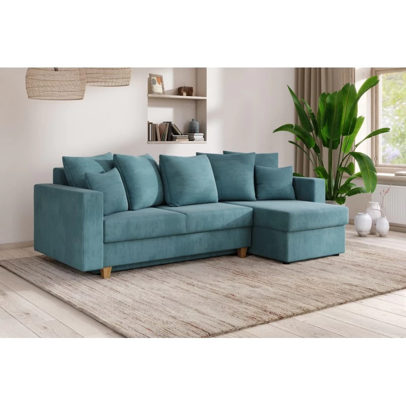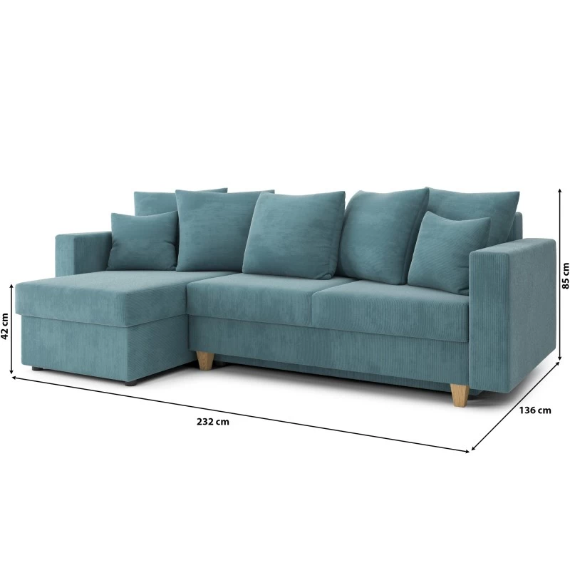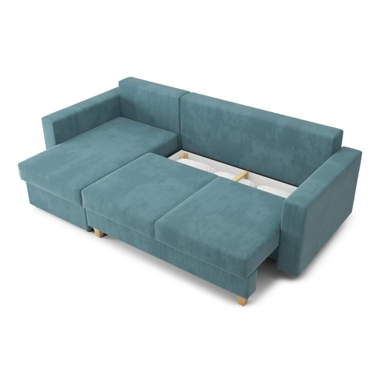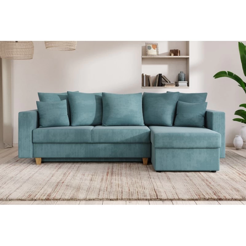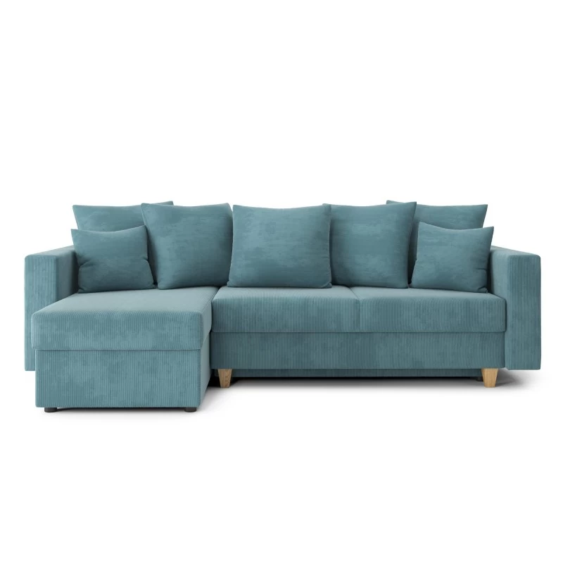 Canapé D’angle KRISTI Convertible Velours Côtelé Bleu Clair 4 Places