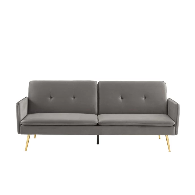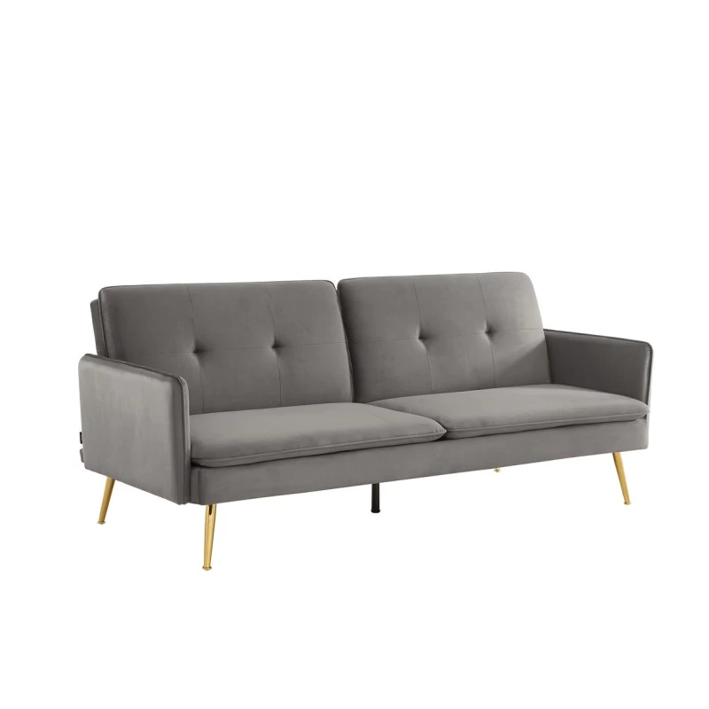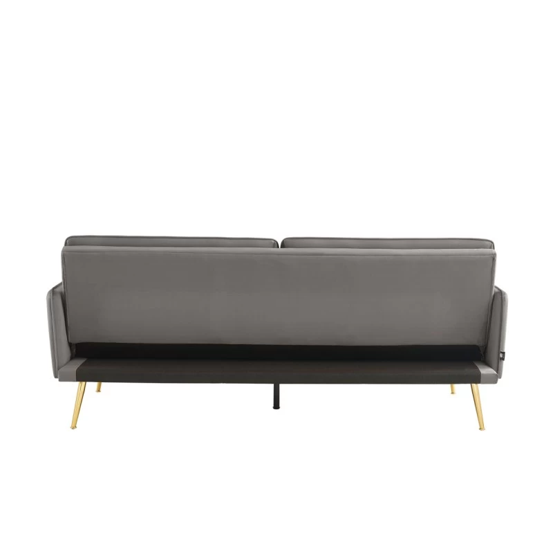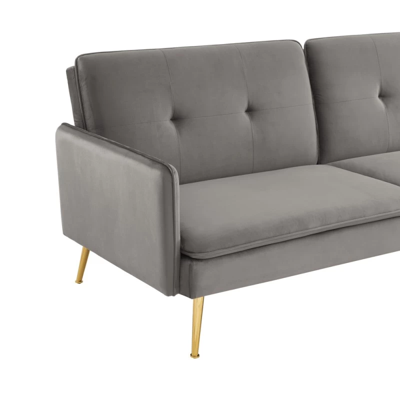 Avec son revêtement en velours anthracite le canapé 3 places ADAM a tout pour plaire ! Son piètement très en vogue en métal doré apportera une touche d’élégance à votre intérieur. N’hésitez plus et laissez-vous séduire par l’association du velours et du métal qui créeront une ambiance vintage. Son petit plus ? Sa fonction convertible pour accueillir vos invités de dernière minute.