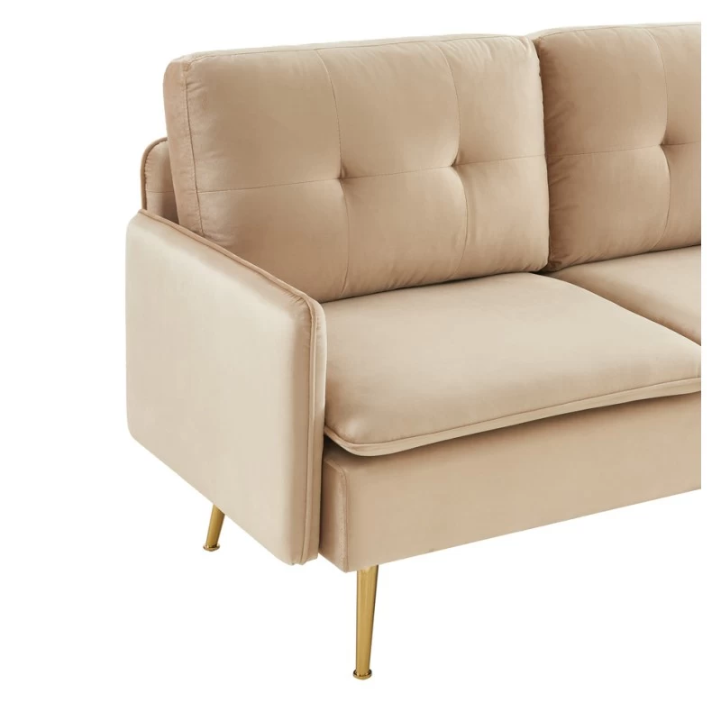 Avec son revêtement en velours beige le canapé 2 places ADAM a tout pour plaire ! Son piètement très en vogue en métal doré apportera une touche d’élégance à votre intérieur. N’hésitez plus et laissez-vous séduire par l’association du velours et du métal qui créeront une ambiance vintage.