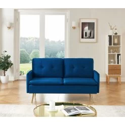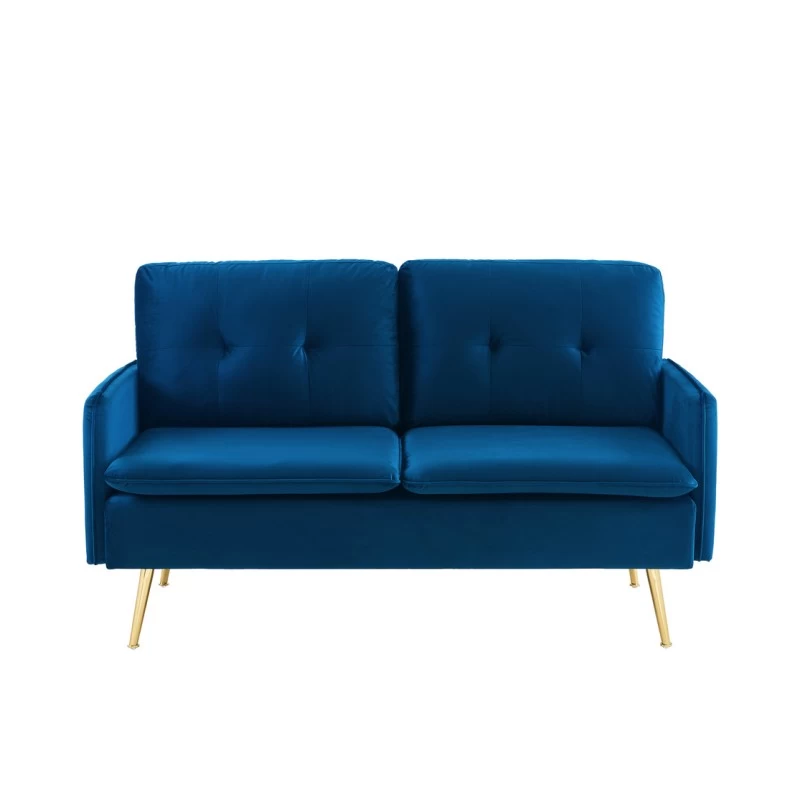 Avec son revêtement en velours bleu le canapé 2 places ADAM a tout pour plaire ! Son piètement très en vogue en métal doré apportera une touche d’élégance à votre intérieur. N’hésitez plus et laissez-vous séduire par l’association du velours et du métal qui créeront une ambiance vintage.