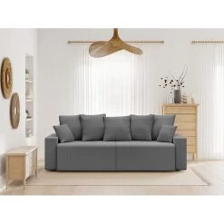 Canapé Droit ALMA Convertible Velours Côtelé Gris Souris 3 Places