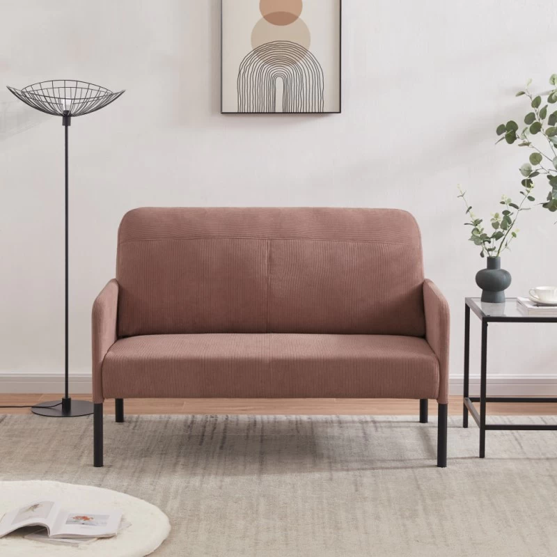 Canapé Droit LIAM En Velours Côtelé Rose Fixe