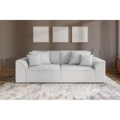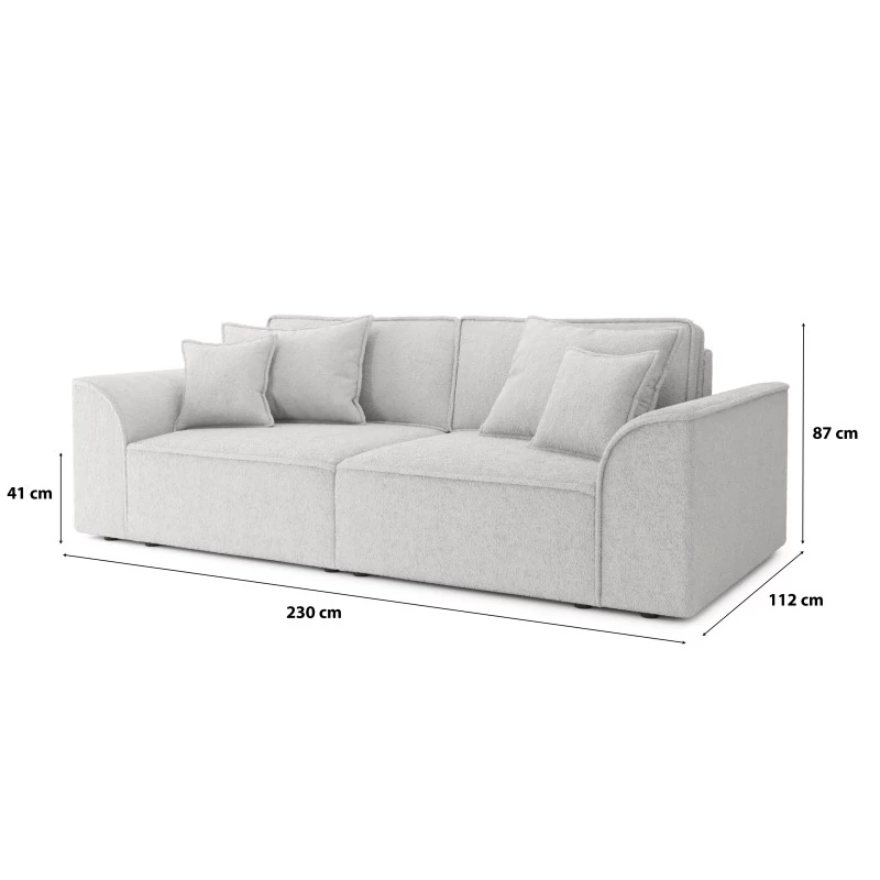 Canapé Droit MARTY Fixe Tissu Bouclette Gris Clair 3 Places