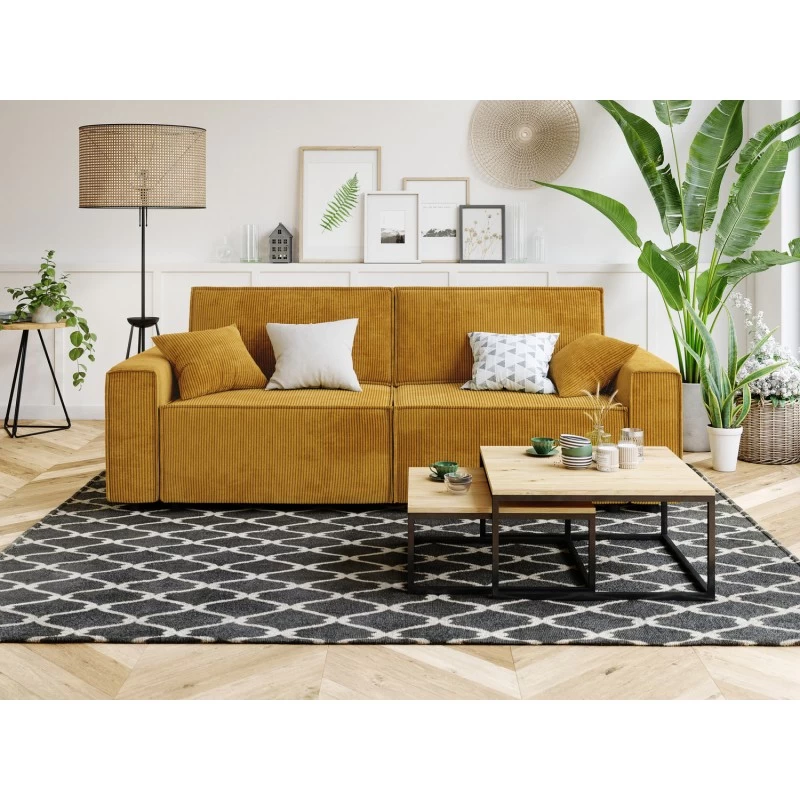 Canapé Droit MIRA Convertible Velours Côtelé Moutarde