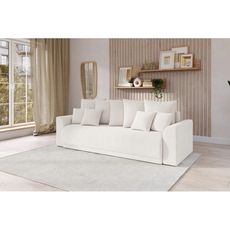 Canapé Droit NOVA Convertible Tissu Bouclette Blanc 3 Places