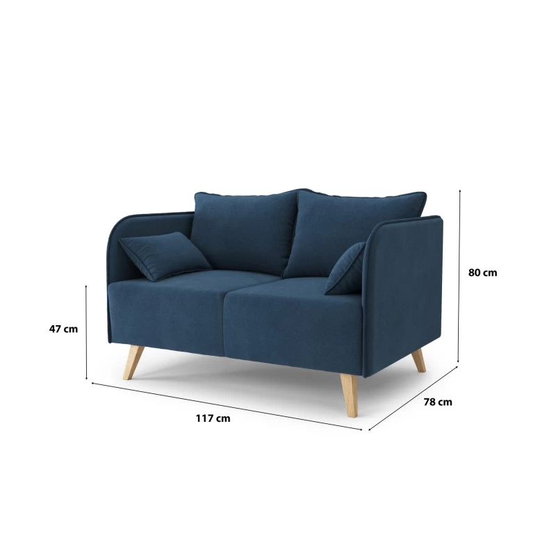 Canapé Droit SARAH Fixe Tissu Bleu 2 Places