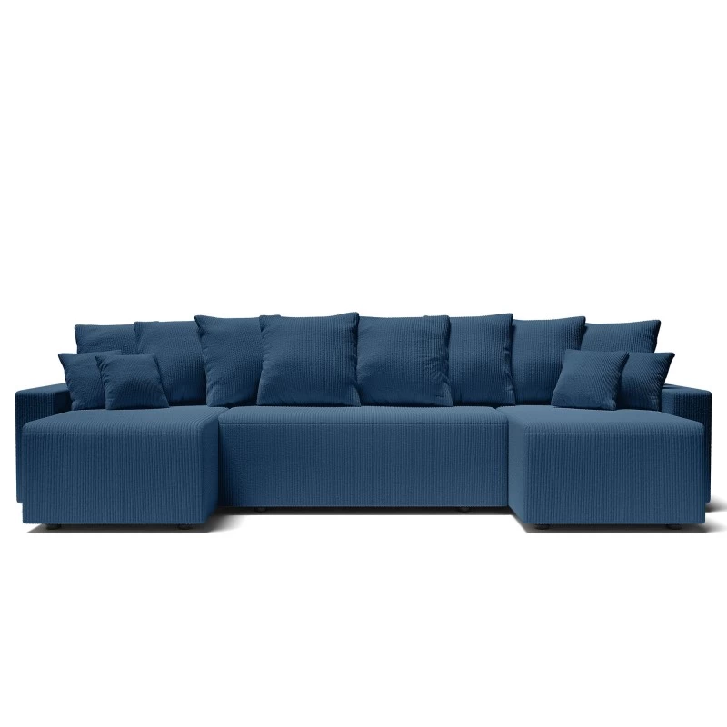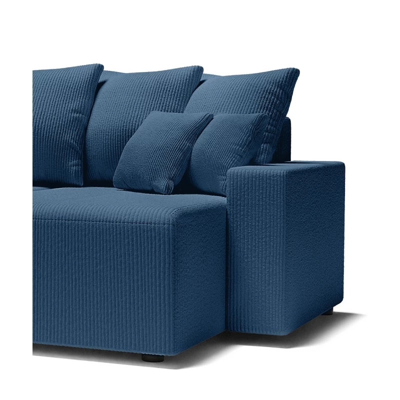 Canapé Panoramique ALMA Convertible Velours Côtelé Bleu Cobalt 6 Places