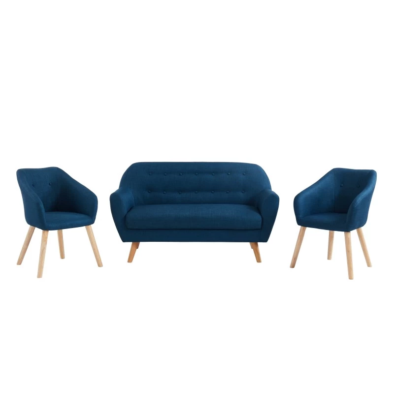 Ensemble HILDA En Tissu Bleu 1 Canapé Et 2 Fauteuils