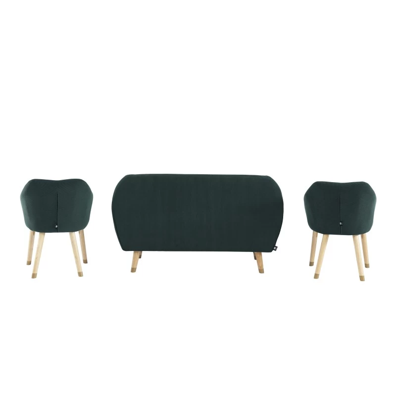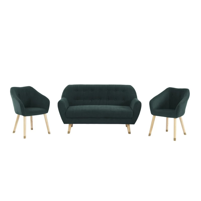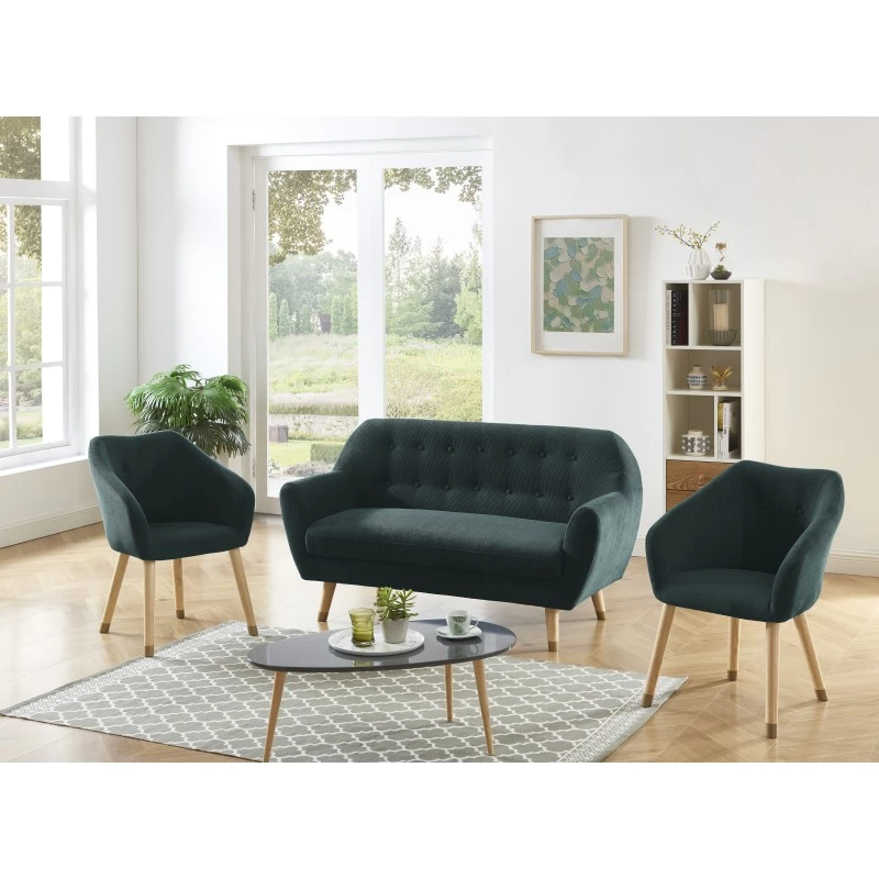 Ensemble HILDA En Velours Côtelé Vert Avec Piètement Bois Et Doré 1 Canapé Et 2 Fauteuils