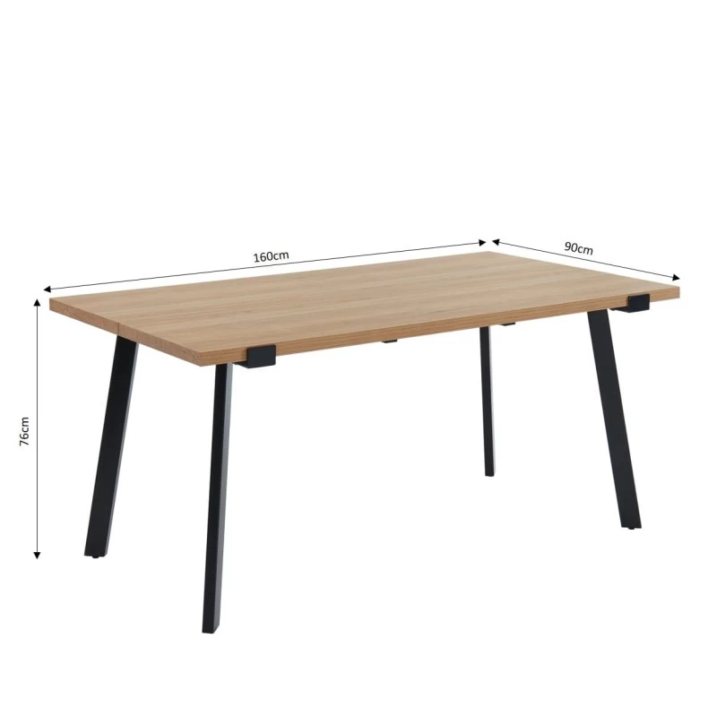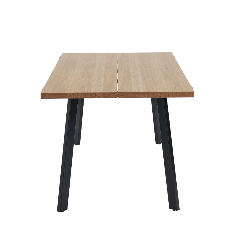 – Table : plateau en MDF et mélaminé effet chêne, pieds en métal noir
