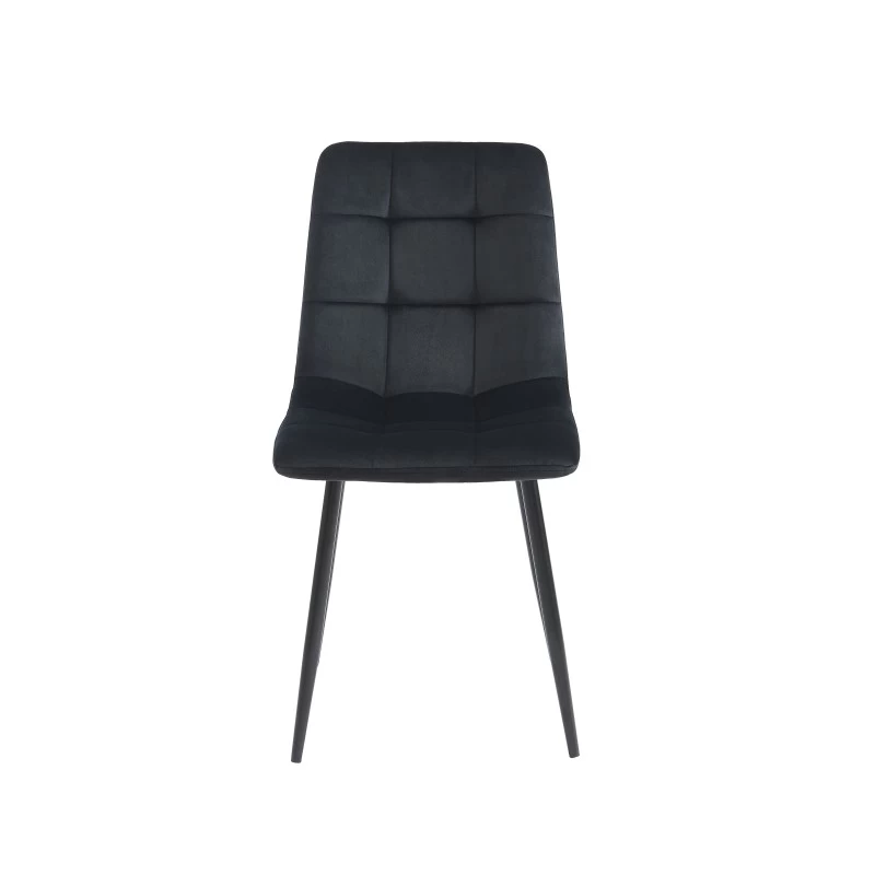 – Chaises : Structure et pieds en métal noir, rembourrage en mousse et revêtement en velours