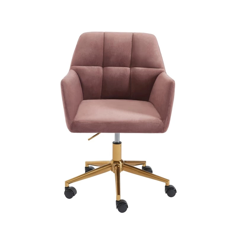 Fauteuil De Bureau MONACO En Velours Rose Avec Pieds Dorés
