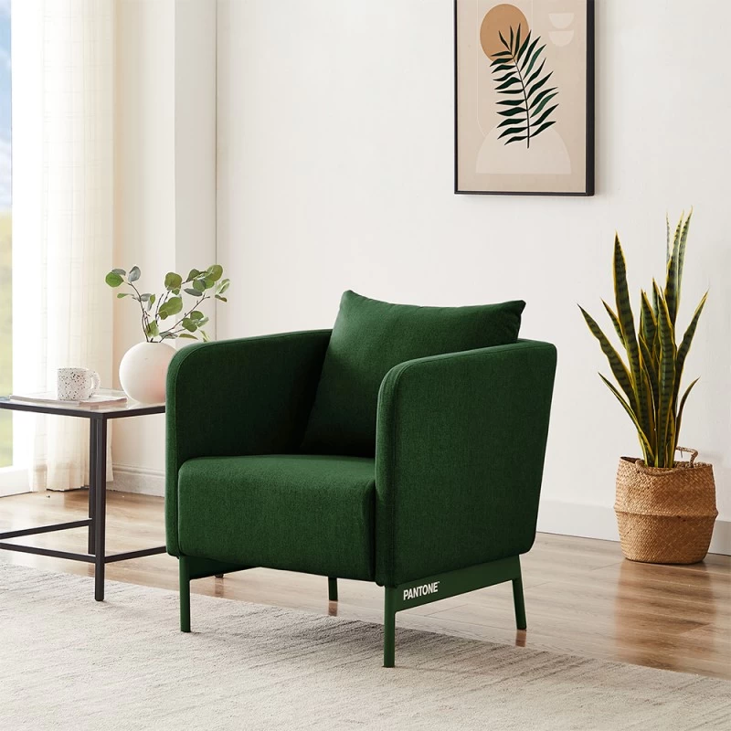 Fauteuil PANTONE Tissu Vert Olive Avec Piètement Métal Vert Olive