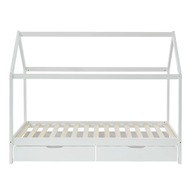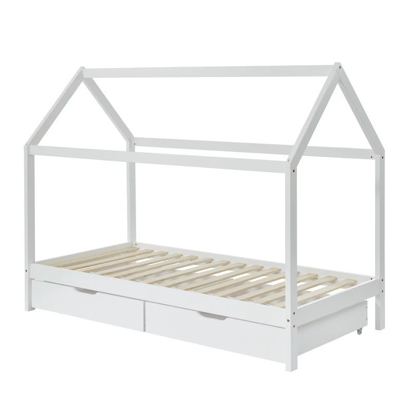 Lit Cabane Avec Tiroirs TINY Pin Blanc 90×190 Sommier Inclus