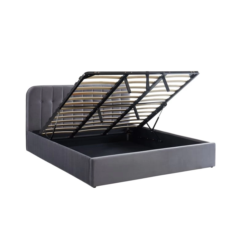 Son atout ? Son coffre qui vous apportera de nombreux espaces de rangement supplémentaires, ainsi que son revêtement en velours gris anthracite lui donnant un style sombre et dans l’air du temps.