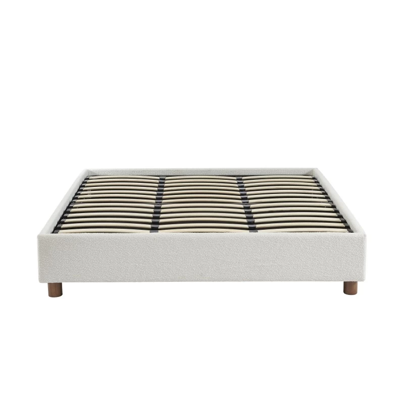 En plus d’être pratique, on craque pour son revêtement en tissu bouclette ultra tendance en ce moment ! La touche en plus de ce lit coffre ? Ses pieds en frêne massif arrondis, modernes et naturels.