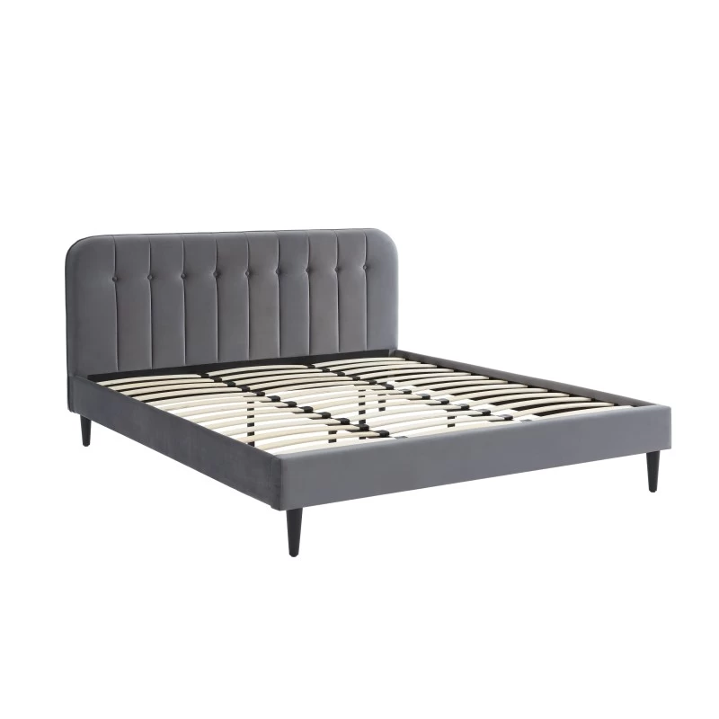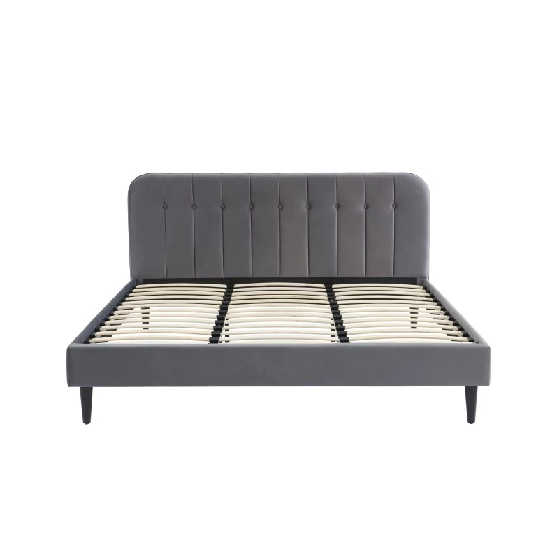 Vous êtes à la recherche d’un lit pour votre chambre à coucher ? Optez pour ce lit double ANDRÉ ! Avec sa tête de lit en velours gris anthracite capitonnée, ce lit apportera une vraie touche d’originalité à votre pièce. Ses atouts ? Un sommier à lattes 180x200cm inclus et des pieds en bois massif pour plus de solidité et de stabilité.