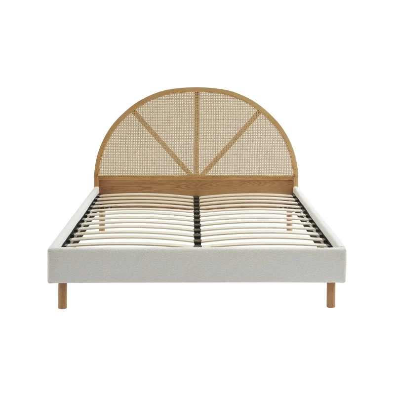 Pour votre chambre, optez pour le lit TSUKI. Alliant à la perfection le tissu bouclette et le cannage, TSUKI sera la pièce maitresse de votre chambre, ultra tendance. On aime sa tête de lit en cannage circulaire, synonyme de douceur et de légèreté.