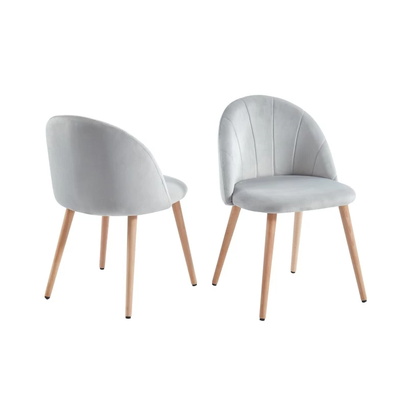 Craquez pour ce style original que vous offre ce lot de 2 chaises SHELL ! Avec son dossier au design coquillage, ces dernières seront les pièces phares de votre salon / salle à manger. Son dossier et son assise vêtus de velours gris clair vous offriront un grand confort et ajouterons une touche déco avec votre intérieur. On aime également ses pieds en hêtre massif, leur donnant plus de solidité, mais aussi une finition plus travaillée.