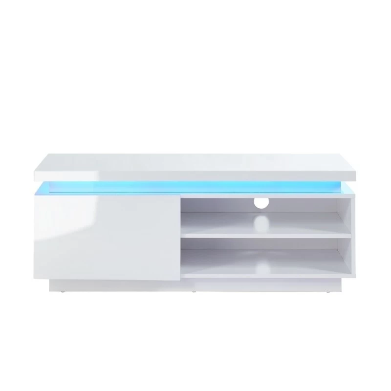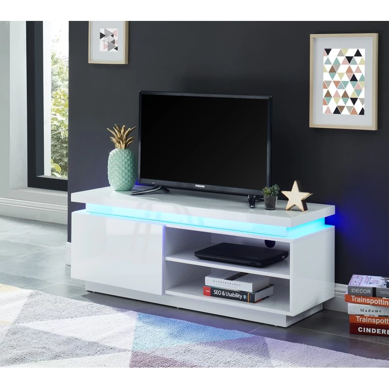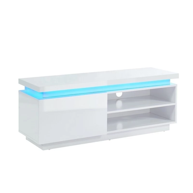 Illuminez votre intérieur avec le meuble TV COSMOS laqué blanc avec LED bleue. Donnez une allure moderne et contemporaine à votre salon. De plus, rangez tout ce que vous voulez grâce sa porte et ses 2 niches !