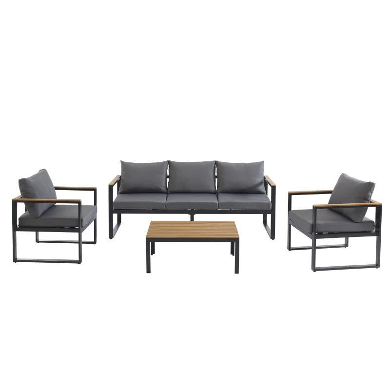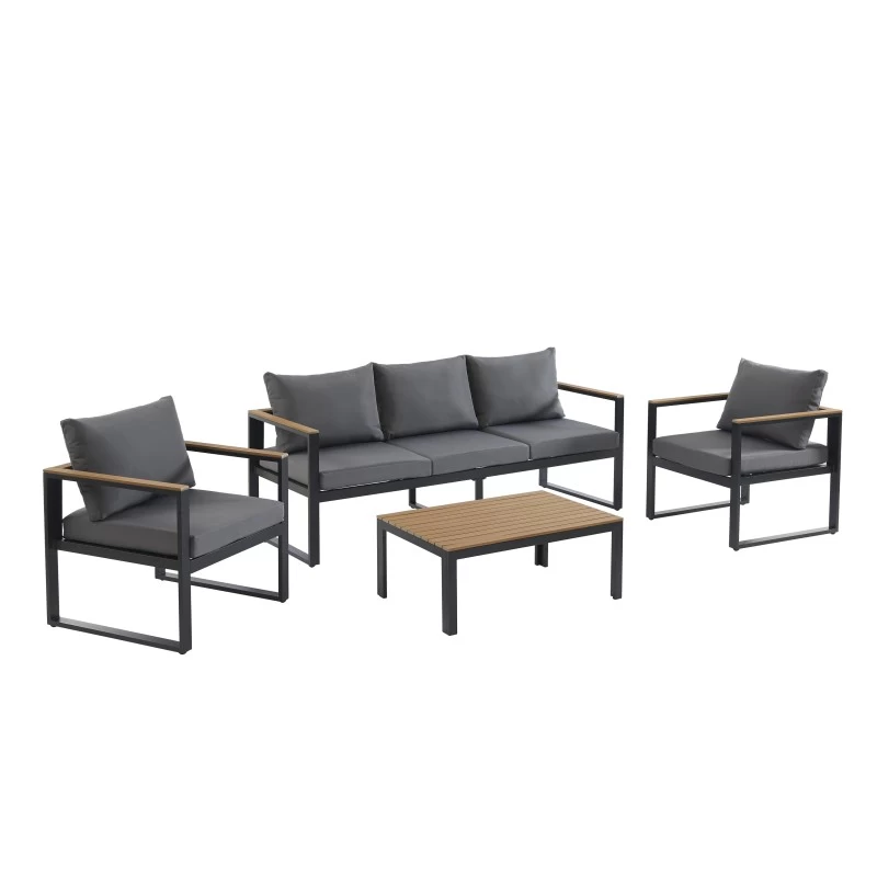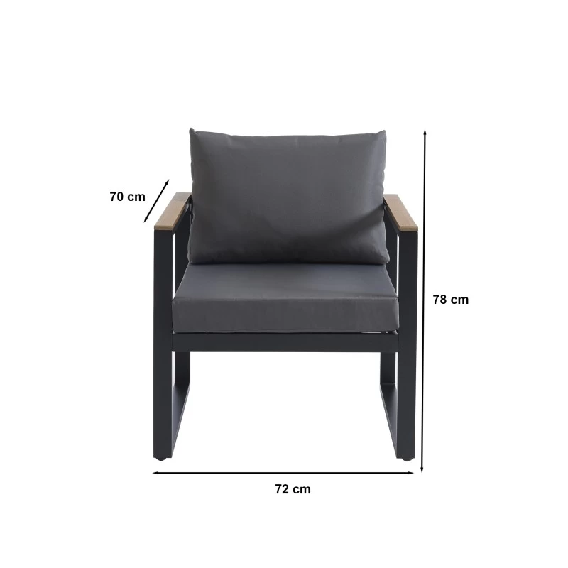 Au design contemporain, optez pour notre salon de jardin ELONA et accueillez jusqu’à 5 personnes.