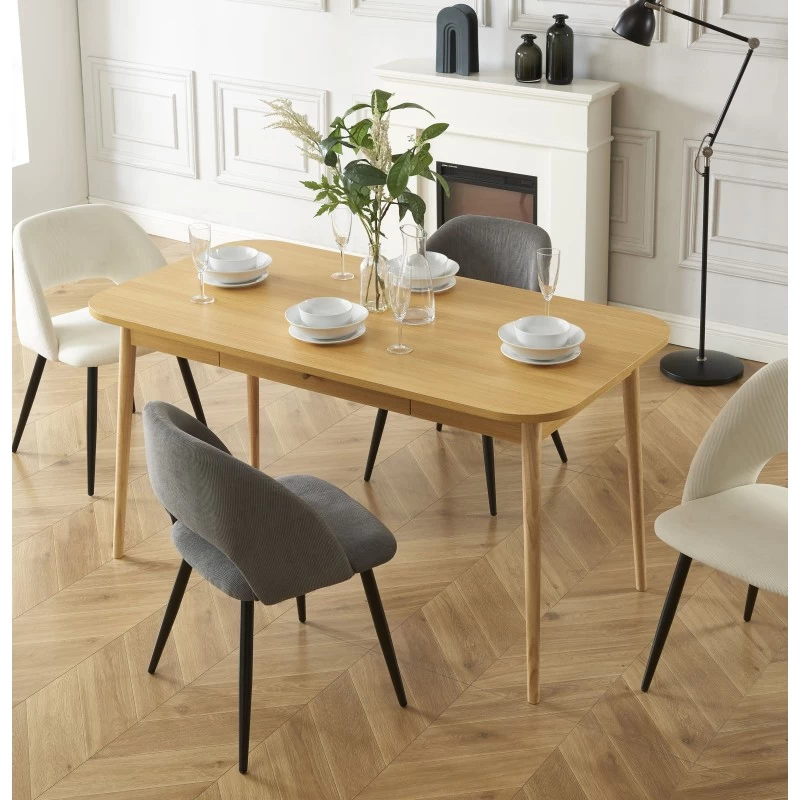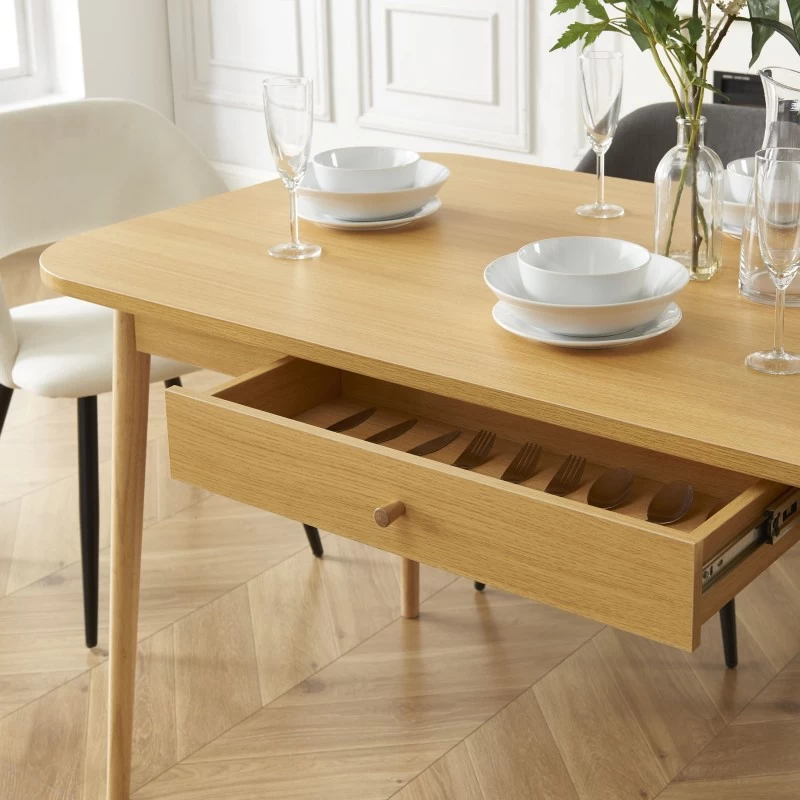 Table à Manger MACARON Effet Chêne Avec Tiroir
