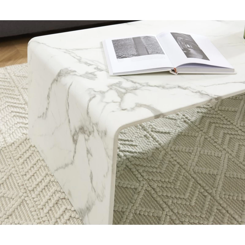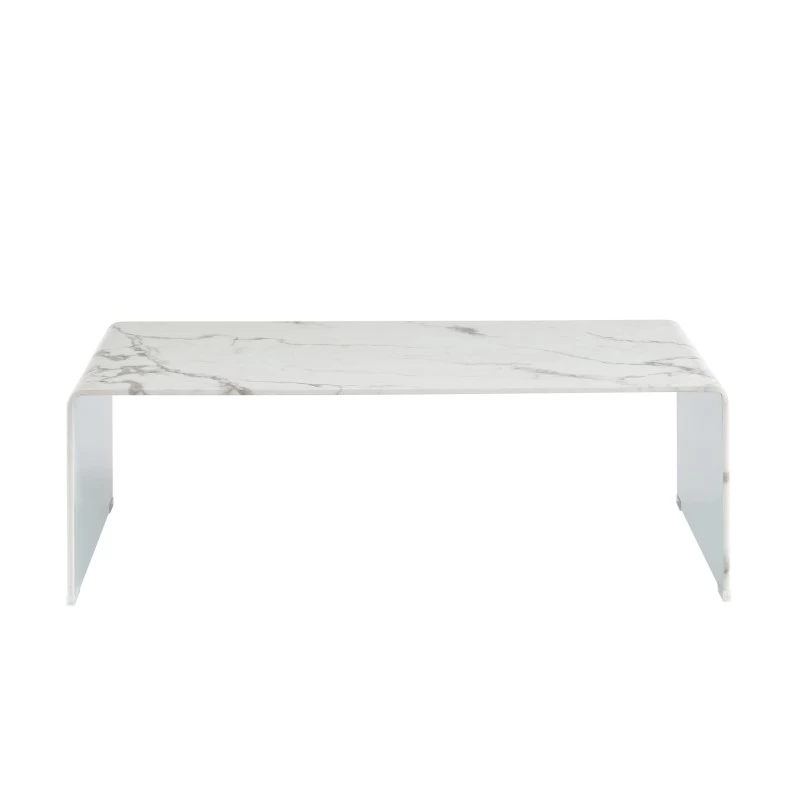 Table Basse GINZA Verre Courbé Effet Marbre 120cm