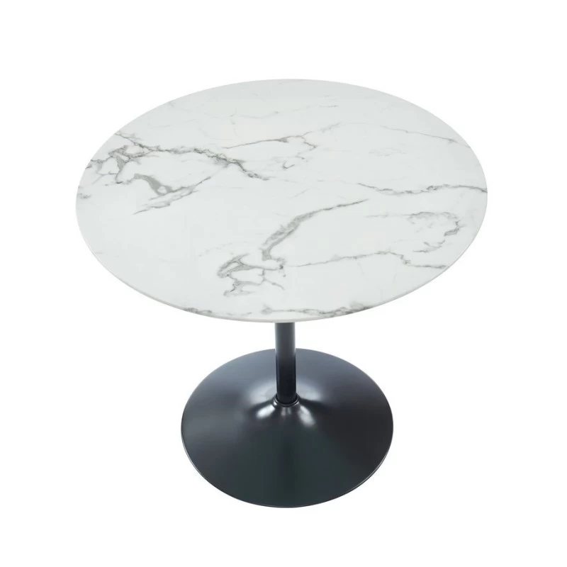 Table Ronde MONIKA Verre Effet Marbre Ronde 90cm Pied Noir